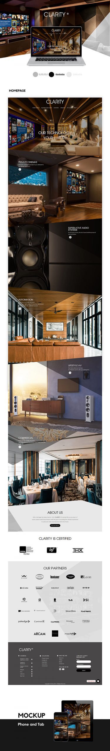 A bold, modern website for a home entertainment system provider to showcase their products and services.